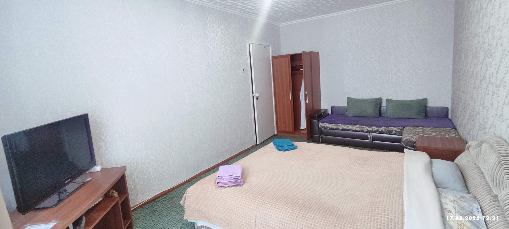Сдаются 1 комн. апартаменты свободной планировки посуточно, площадью 37 кв.м. Жилая площадь 23 м2, кухня 6 кв.м. В квартире три спальных места. Квартира располагается на 3 этаже 9-этажного панельного дома.